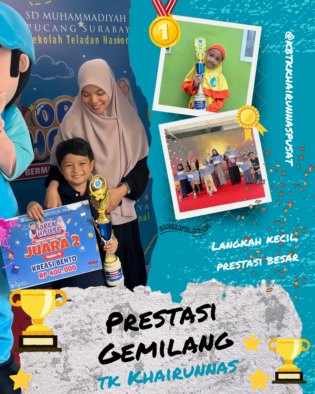 - Juara Harapan 1 Lomba Tahfidz – TK B Khairunnas