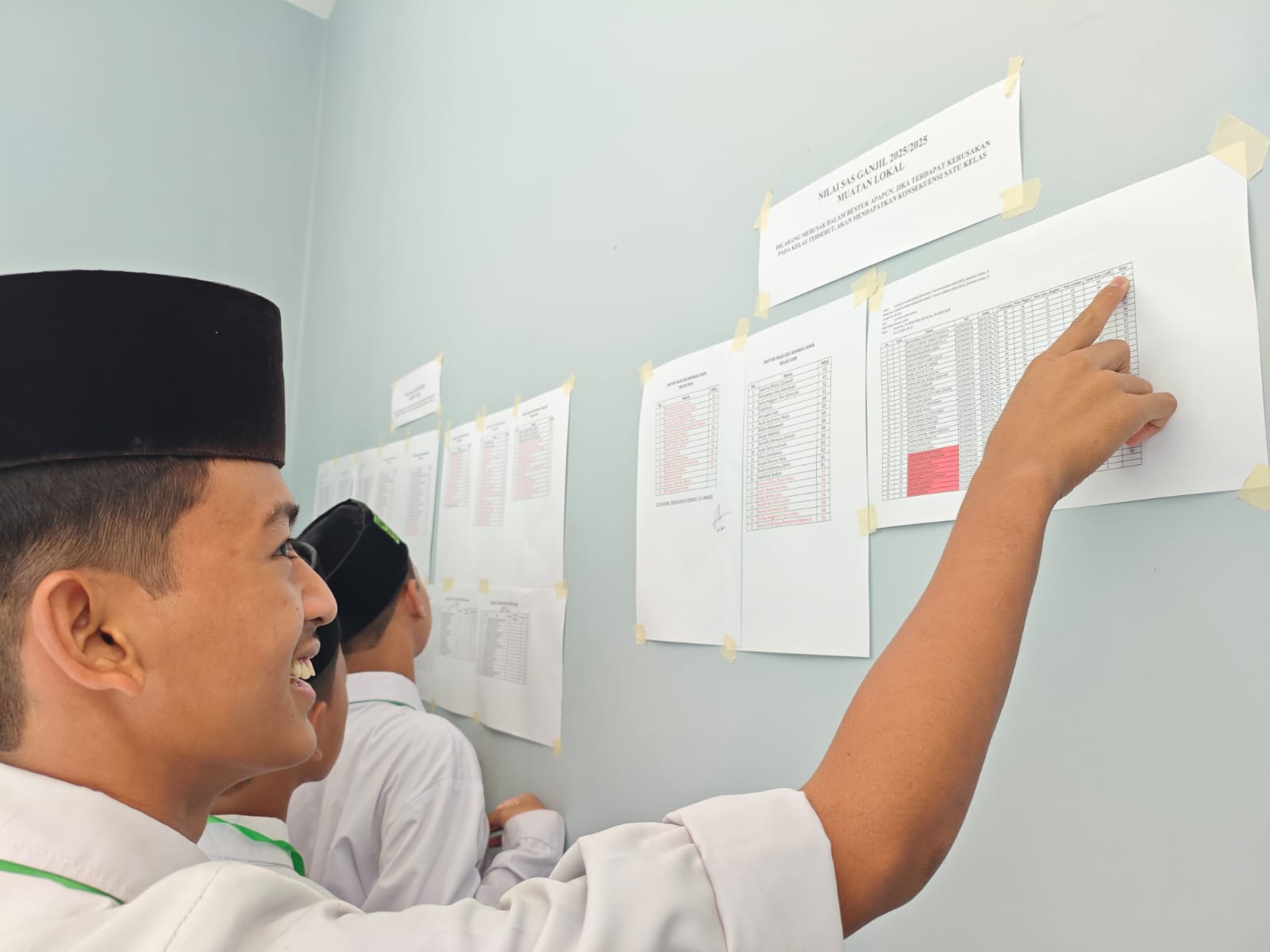 Saat lembar hasil ditempelkan, suasana mendadak hening. Para santri mendekat perlahan, membaca satu per satu angka yang tertulis. Setelah itu, terdengar bisik syukur, tepukan bahu, dan senyum lega menyertai. Setiap hasil—baik yang tinggi maupun yang masih perlu ditingkatkan—diterima sebagai refleksi usaha sungguh-sungguh.